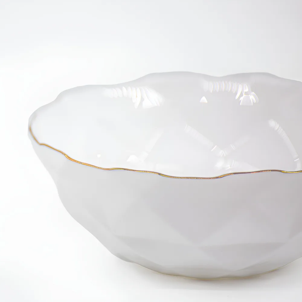 Bolul din gama Veselo Hexa Gold este piesa versatilă de care ai nevoie pentru a aduce un strop de lux în ritualul tău zilnic. Fie că îl folosești pentru cerealele de dimineață sau pentru o supă caldă la prânz, designul său geometric și marginile aurii îl fac să iasă în evidență pe orice masă.