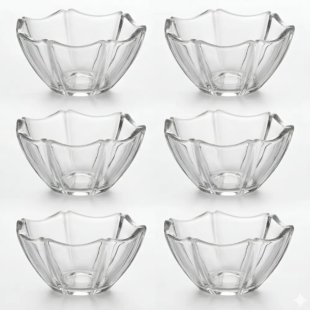 Set 6 boluri din sticlă Veselo Crystal: Pentru Desert, Mic Dejun și Sosuri