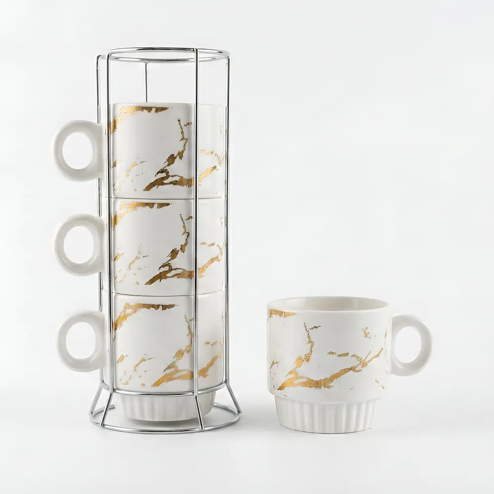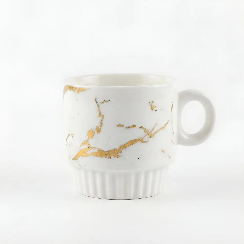 Set 4 cești din ceramică Veselo Marble Gold, design alb marmurat cu auriu
