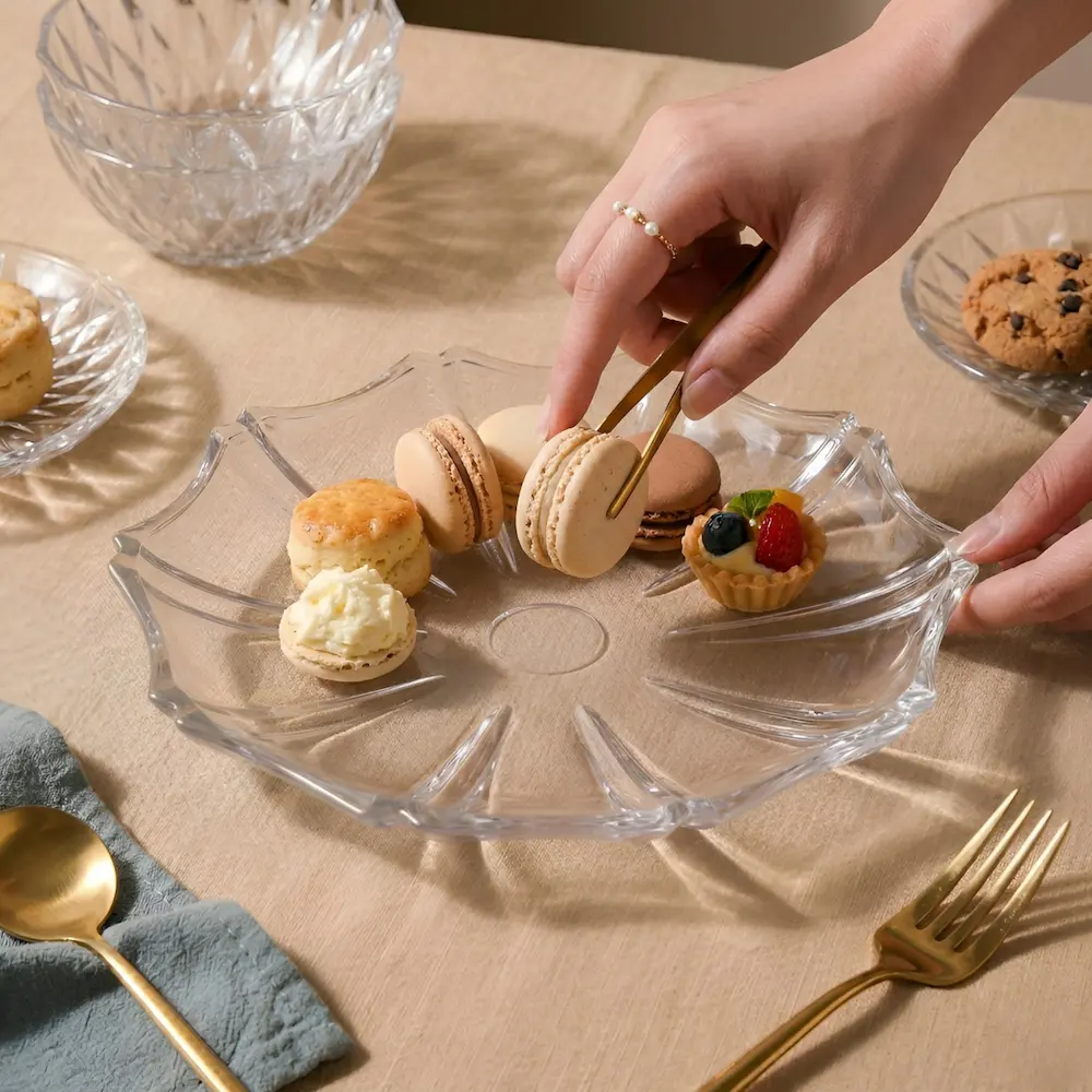Multifuncționalitate: Datorită profilului plat, poate fi folosită cu succes ca platou pentru servirea aperitivelor sau ca bază pentru aranjamente decorative cu pietre, flori sau lumânări parfumate.