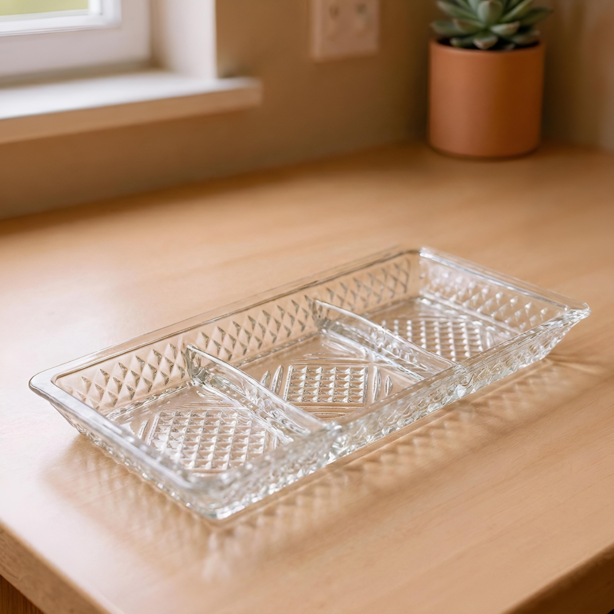 Separarea perfectă a aromelor: Fiecare secțiune este delimitată clar prin pereți de sticlă groasă. Astfel, poți servi alături măsline marinate, nuci sărate, dulciuri sau brânzeturi fine, fără riscul ca uleiurile sau gusturile să se transfere de la un preparat la altul.