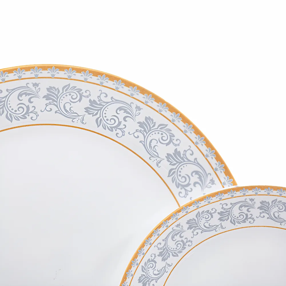 • Design Rafinat Lisa: Motive delicate în tonuri gri-albăstrui și accente aurii, care oferă o notă de lux discret oricărei mese.
