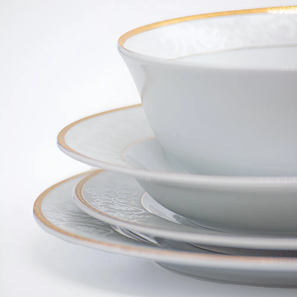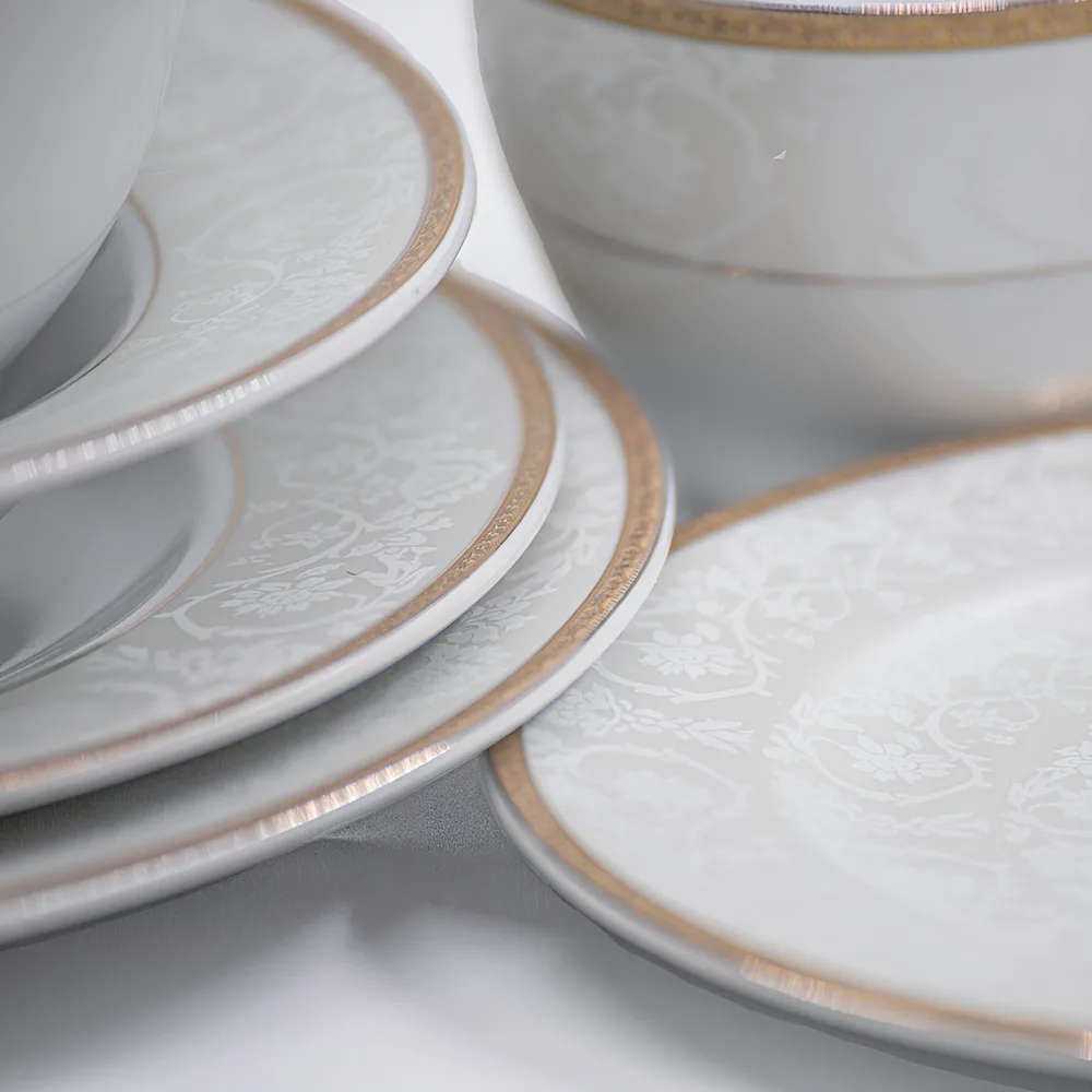 Serviciu de masă din porțelan Veselo Henrik, 6 persoane (36 piese), Design Modern cu Foiță de Aur 24k