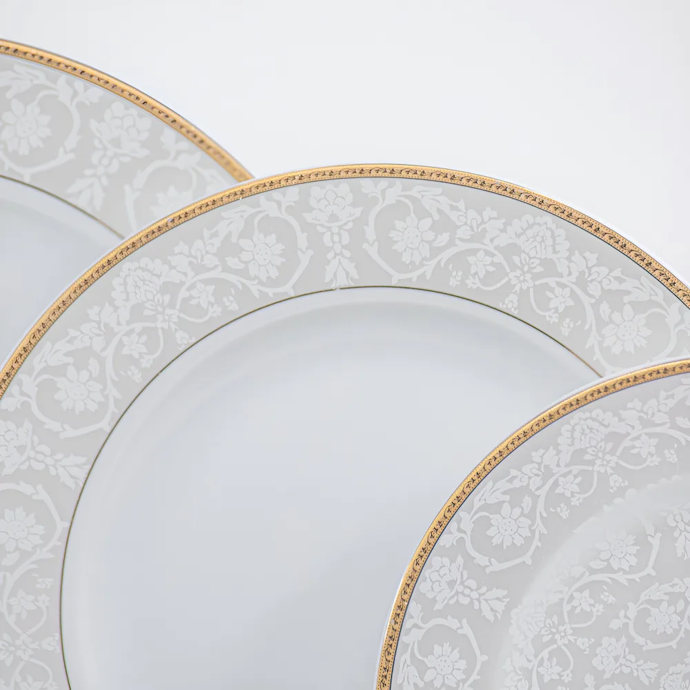 Durabilitate Extremă: Porțelan vitrificat de înaltă densitate, ars la peste 1300°C, rezistent la utilizarea intensă a tacâmurilor (cuțit și furculiță).