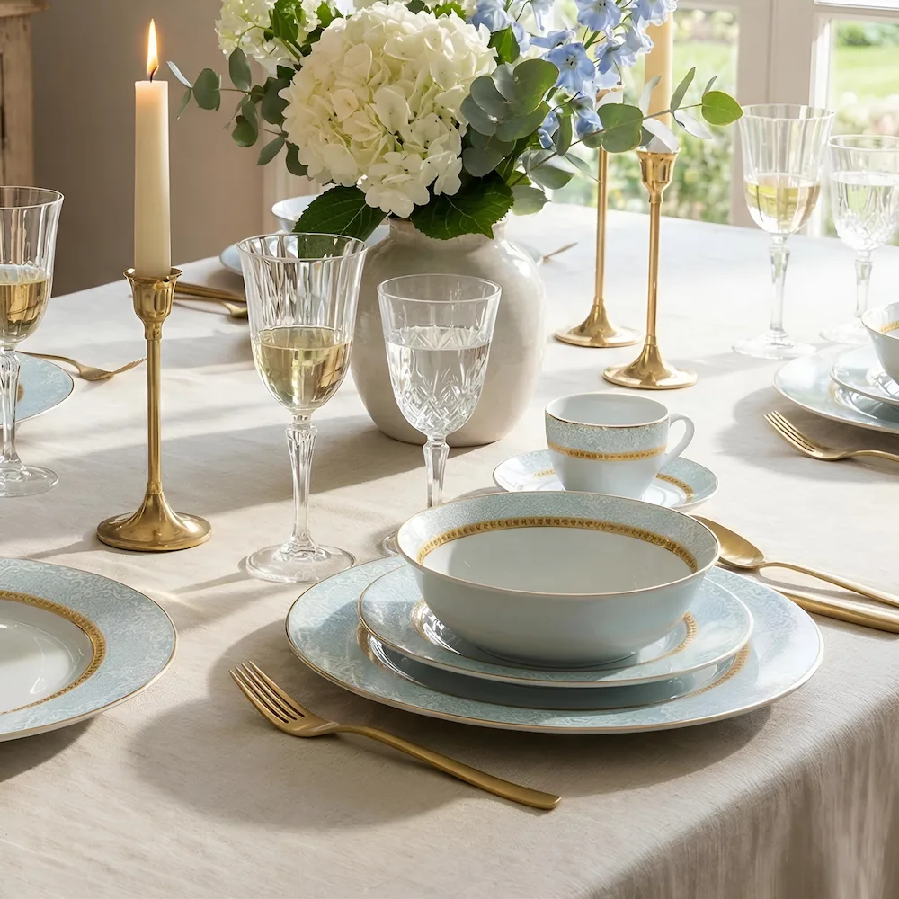 ● Configurația de Lux Esențială: Serviciu de masă pentru 4 persoane (12 piese), perfect pentru cine intime cu un strop de rafinament.