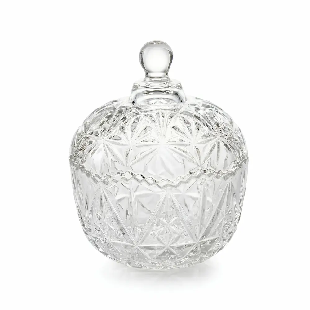 Bombonieră din sticlă Veselo Royal cu capac, design clasic transparent 13.5cm